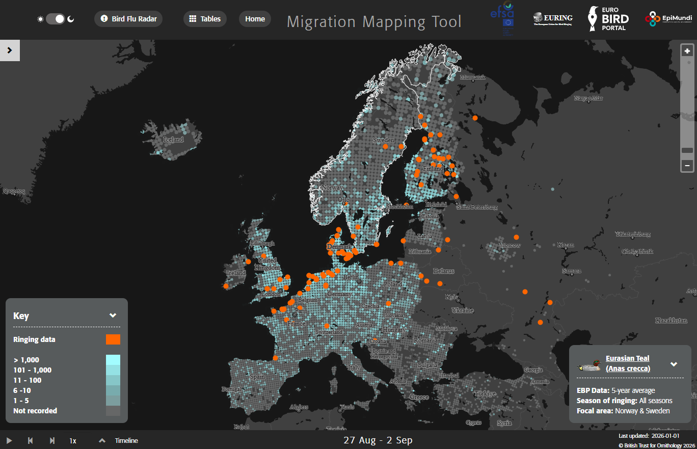 The EBP is the perfect companion to the work developed by the other two main projects undertaken by the EBCC: the Pan-European Common Bird Monitoring Scheme (PECBMS) and the new European Breeding Bird Atlas (EBBA2). PECBMS, a joint initiative with BirdLife International, monitors breeding population trends across Europe, using large-scale and long-term common breeding bird surveys and developing indicators of the general state of nature, while EBBA2 will produce a precise snapshot of the breeding distribution of all European bird species for the whole continent and for a specific time window (2013–2017). The EBP project complements PECBMS and EBBA2 by focussing on the study of continental-wide seasonal changes in bird distribution as well as those temporal changes taking place too fast as to be properly tracked by more traditional monitoring projects. EPB, moreover, promotes the use of simple, standardized bird recording protocols, to improve the quality of the results that can be produced using these data.